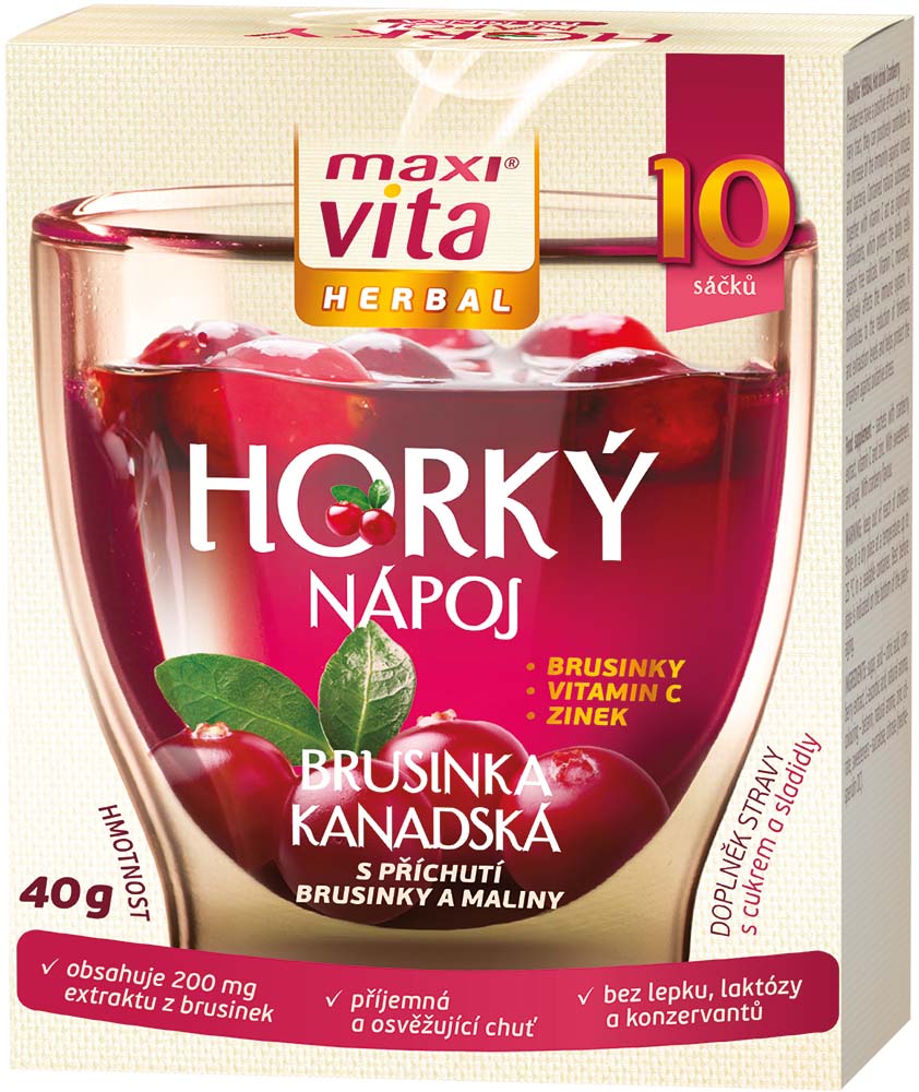 Doplněk stravy – sáčky s obsahem extraktu z brusinek, vitaminu C a zinku. Se sladidly a cukrem. S příchutí brusinky.