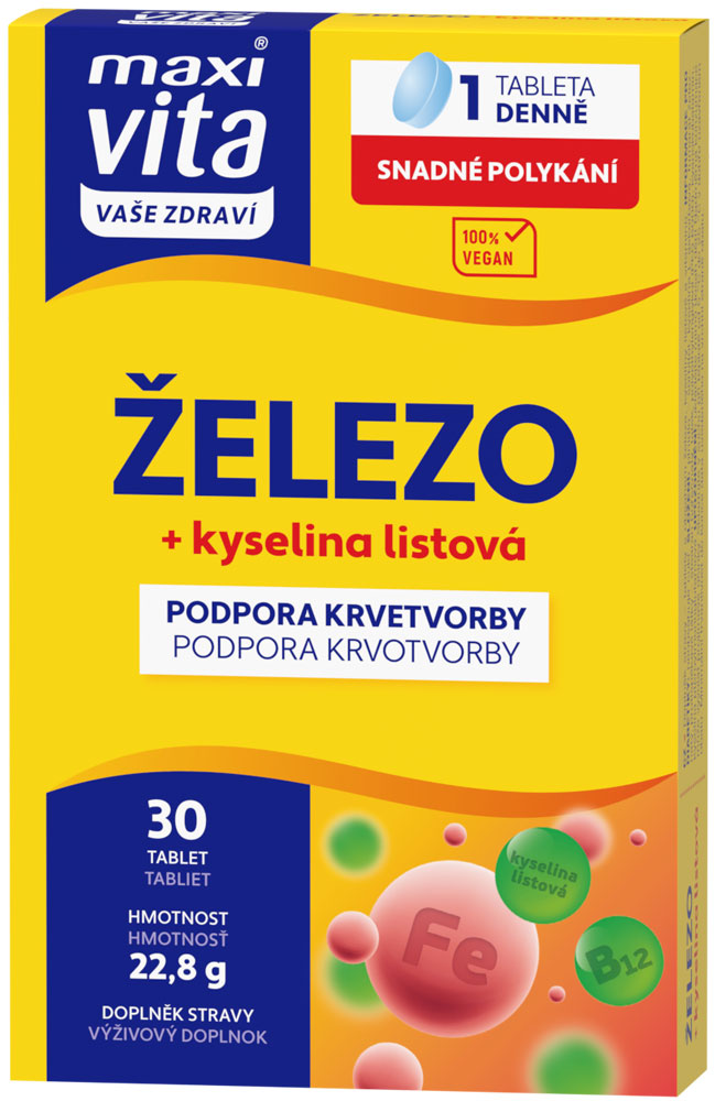 Železo je důležitá minerální látka, která je stejně jako kyselina listová nezbytná pro tvorbu krvinek a červeného krevního barviva - hemoglobinu. Ten zajišťuje okysličování organizmu a tím i jeho odolnost a výkonnost. Významnou roli při vstřebávání železa mají také vitamin B12 a vitamin C, které navíc přispívají k normální funkci imunitního systému.