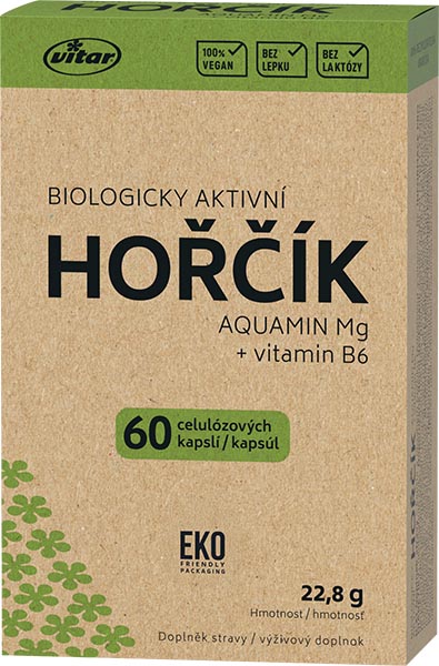 Veganské kapsle s obsahem biologicky aktivního, tělu dobře vstřebatelného hořčíku ve formě Aquaminu Mg, který je získáván z mořských řas.